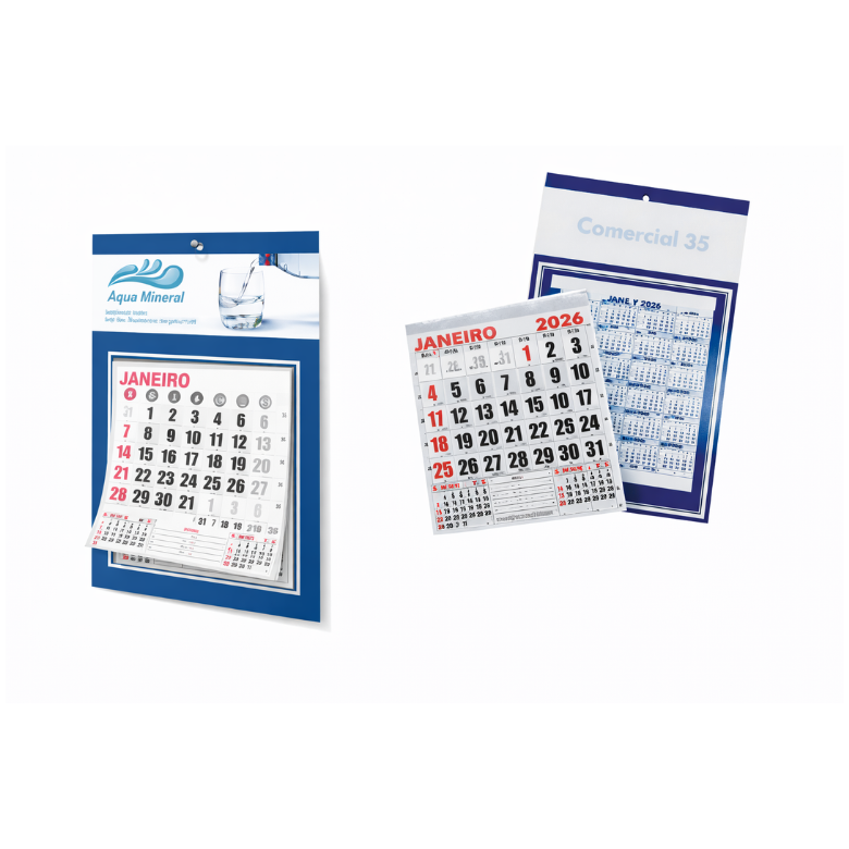 A folhinha de calendário comercial é uma opção prática e eficiente para divulgação de empresas. Por ser um item muito utilizado em ambientes comerciais e residenciais, mantém sua marca visível diariamente.